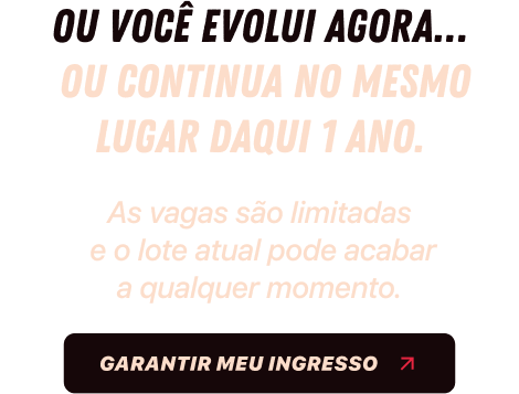 Basta clicar no botão ‘Comprar Ingresso’ e você será redirecionado para a plataforma Sympla, onde poderá escolher entre os planos Individual, Dupla ou Premium — todos com 10% OFF na pré-venda. Pagamento seguro em até 12x.